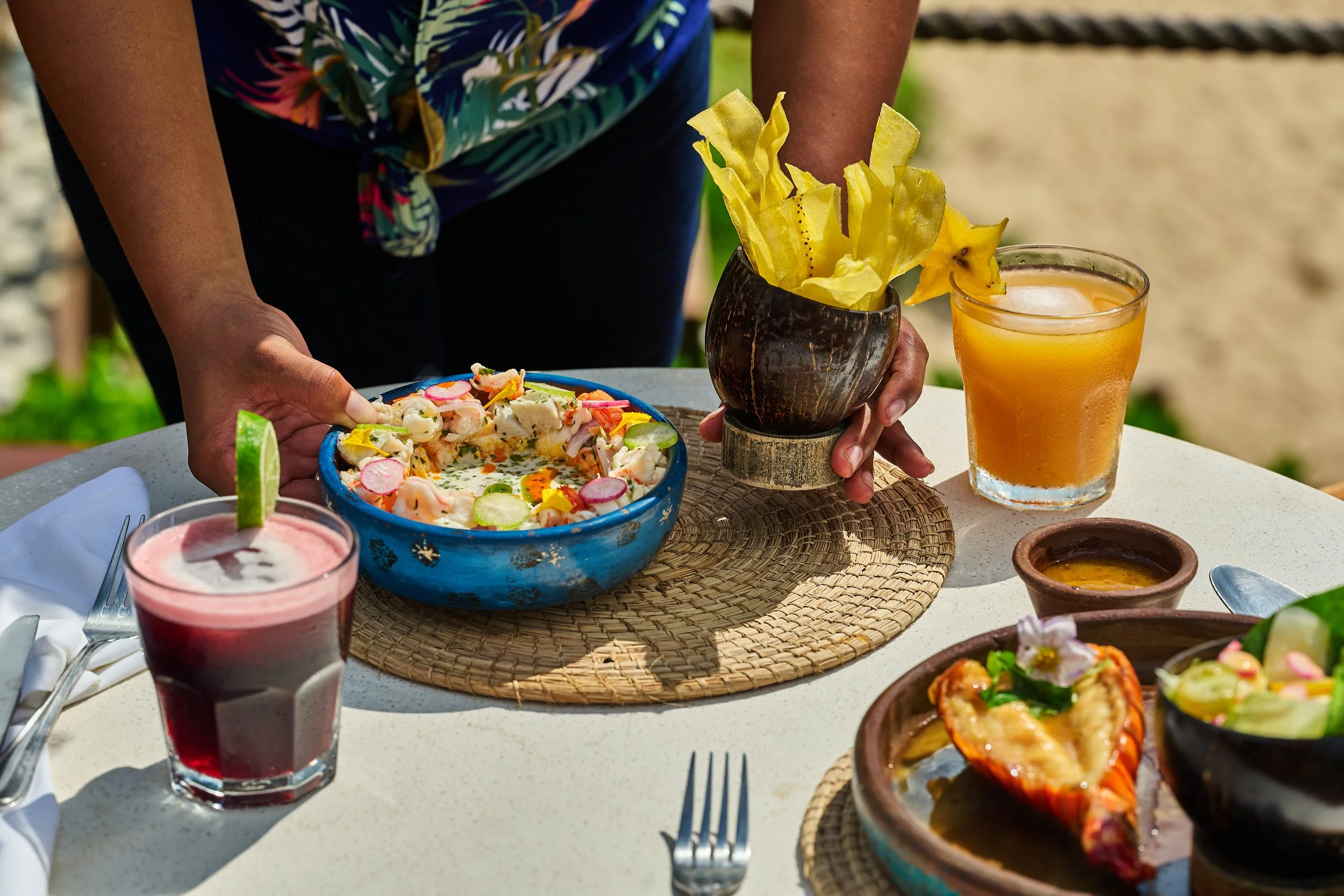 The resort restaurant captures the essence of island living with its open-air, oceanfront setting and vibrant, locally inspired cuisine. Centered around fresh, seasonal ingredients, the menu features just-caught seafood, garden-grown produce, and Nicaraguan-Caribbean flavors. All dietary restrictions can be accommodated.